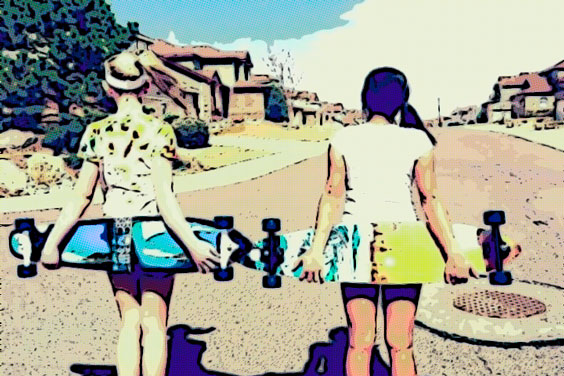 RHMS eighth graders Abby Adams (left) and Hannah Phillip (right) show the official longboarder stance which showcases the boards’ under deck design. By Kathy Dunker with photos courtesy of Michelle…