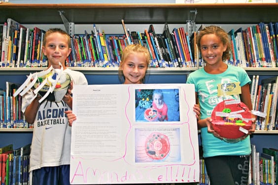 These fifth grade students used their creativity to create these wonderful projects. From left to right: Trevor used half of a basketball; Amanda made a cake for the class to…