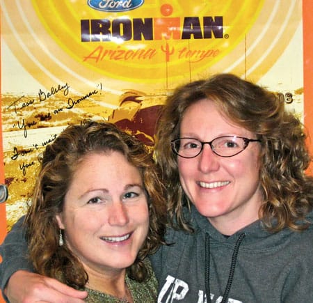 Sisters and breast cancer survivors Anne Ruybal (right) and Tess Balsley (left) plan to compete alongside each other at the Ironman Triathlon Arizona on November 20. Together they hope to…