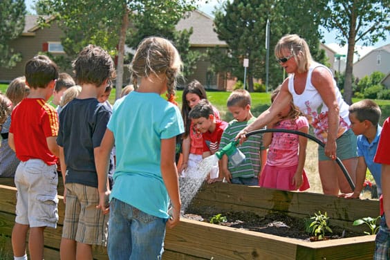 Read MoreMrs. Miller’s first grade class watches closely as Garden to Chef parent volunteer, Nina Amey, shows them how to water newly planted veggies and fruits with organic plant food. Article…