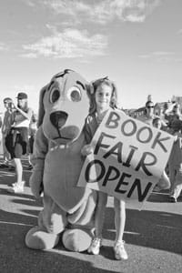 Read MoreThe book fair’s grand opening happened in conjunction with the Rock Slide and the Waffle Brother’s Waffle Breakfast. While runners stretched and prepared for the race start Clifford the Big…