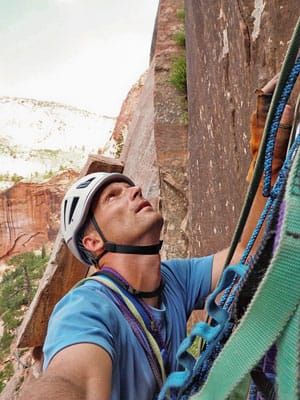 Zwick, climbing the face of the rock where he slept on a man-made ledge that he carried in his 200 pounds of gear. by Carin R. Kirkegaard with pictures submitted…