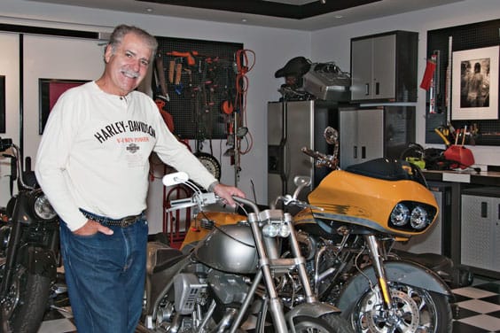 Retired vice president of business development for Harley-Davidson, Clyde Fessler, spends time in his “man cave” with a few in his collection of iron horses, each of which is named…