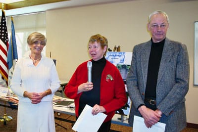 Read MoreJudy Brand (center) Chairman of the Mt. Rosa Chapter of the Daughters of the American Revolution, presents a Community Service Award to Castle Pines North residents Vicky and Frank Kellen.…