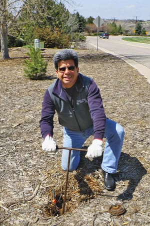 Jeff Huff, the president of the Hidden Pointe Metro District and Horticulture Specialists, Gary LeCaptain by Lisa Crockett Spruce trees in the Castle Pines community are threatened by infestation from…