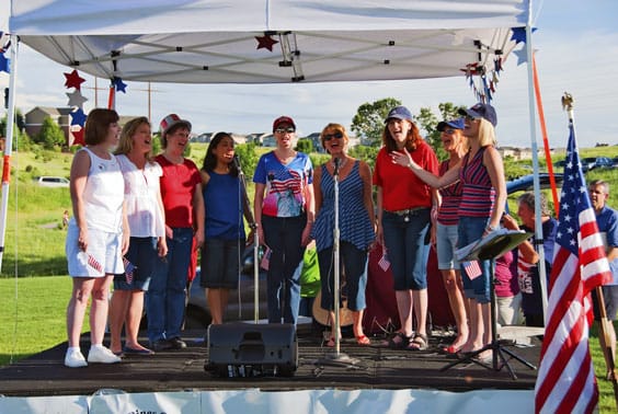 The Castle Cappellas performing at the City of Castle Pines North Independence Day celebration on July 3 at Coyote Ridge Park. Members include (pictured left to right) Crista Huff, Keri…