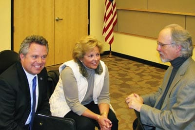 Don Bobeda, Castle Pines Chamber of Commerce Chairman, Mayor Maureen Shul, City of Castle Pines North, and Jamie LaRue, Douglas County Libraries Director at the March 19 Douglas County Library…