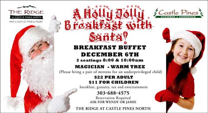 Read MoreThe CPN Chamber of Commerce and The Ridge will present a Holly Jolly Breakfast with Santa on Saturday, December 6, at 8 a.m. and at 10 a.m. Tickets are $22…