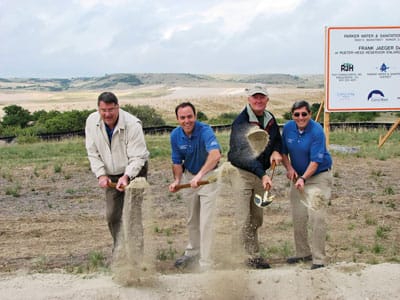Metro District Manager James McGrady (far left) joins District board members Bill Santos, Ted Lohr and Bruce Thompson (left to right) at the Rueter-Hess Reservoir expansion groundbreaking ceremony on September…