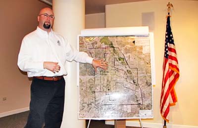 Read MoreCentennial Airport Manager of Planning and Development Michael Fronapfel explains the Centennial Airport influence area map at a Castle Pines North Master Association sponsored community meeting. (photo by Terri Wiebold)…