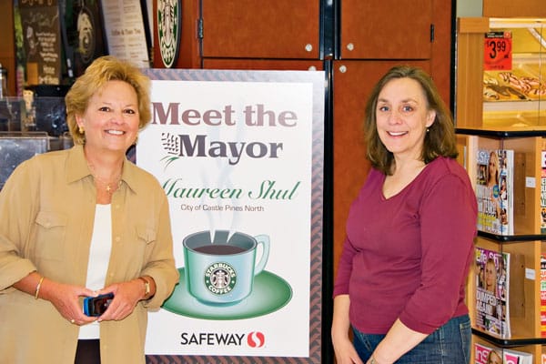 Mayor Maureen Shul (left) meets with CPN resident Mary Kerch at the Starbucks located inside Safeway on May 17. Mayor Shul hosts these events monthly and encourages residents to stop…