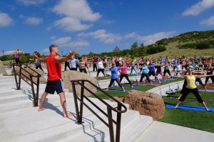 The amphitheater is also a space for free yoga classes on Sunday mornings in the summer months.