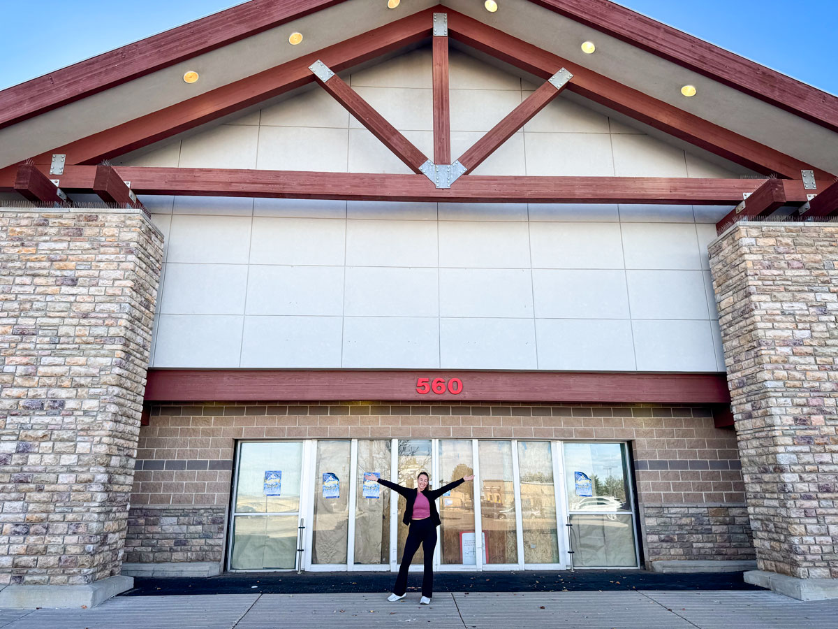 Alexis Pfeiffer stands outside the vacant building she hopes will soon be home to her new business, Engage: A Total Wellness Community.
