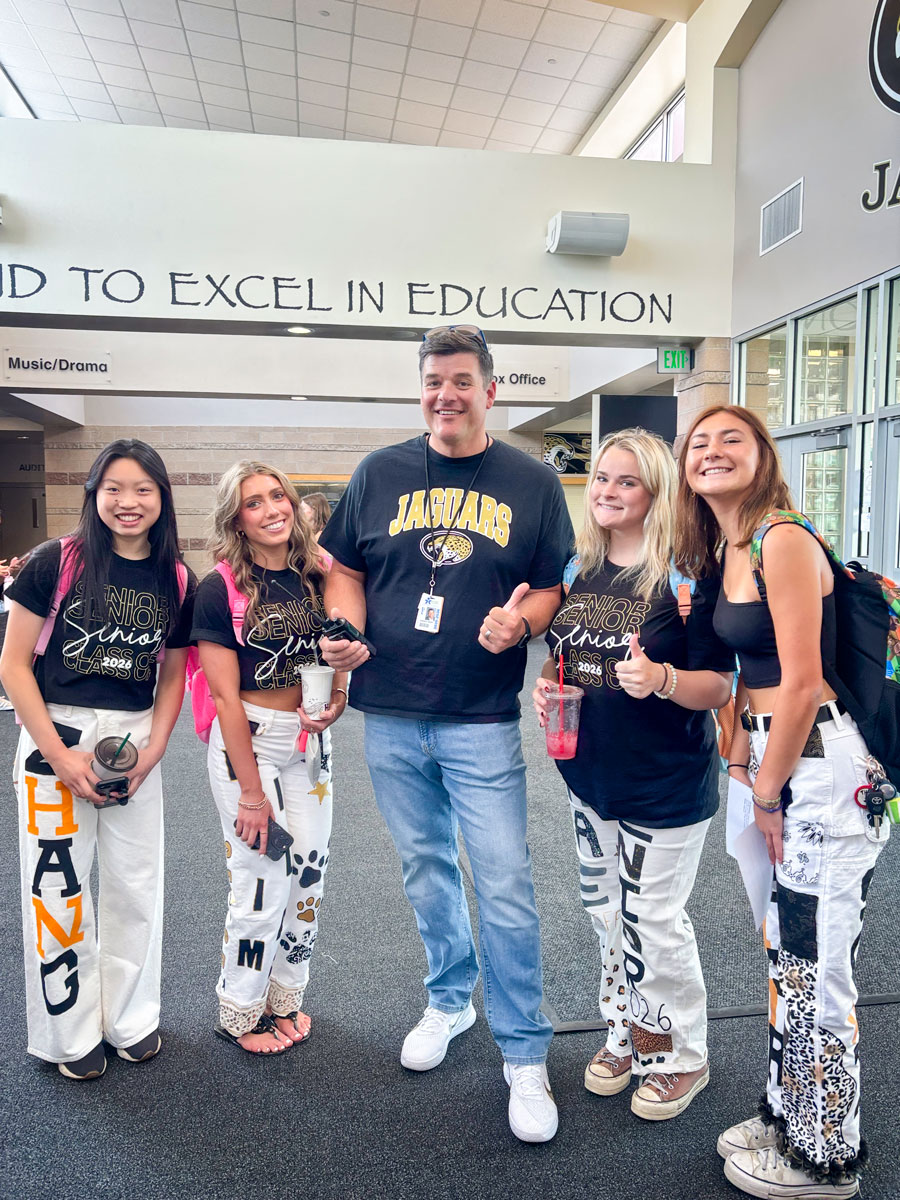 From left to right: Hannah Zang, Grace Williams, Principal Andy Abner, Lauren Wilky and Lauren Scott wanted to connect with the community by partnering with a nonprofit.
