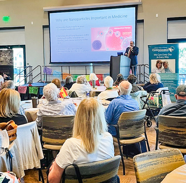 Dr. Nalin Mehta, MD, spoke to attendees about nanobiotechnology in medicine. The technology plays a role in both diagnostic and therapeutic medicine.