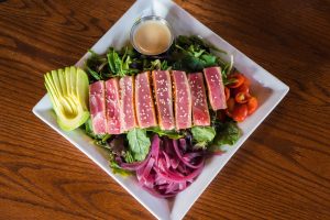 Nikos’s personal favorites include the Bronco Burger, topped with applewood-smoked bacon, onion rings, jalapeños, BBQ sauce, and smoked cheddar cheese, as well as the Smothered Brunch Burrito filled with eggs, chorizo, potatoes, bacon, and cheddar, smothered in green chile and topped with diced tomatoes and green onions.