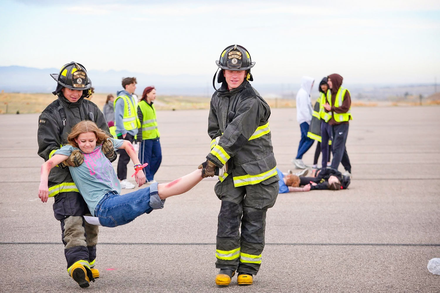 Students participate in a mock drill to get life-like training to complete their certification and for a potential career in emergency services.