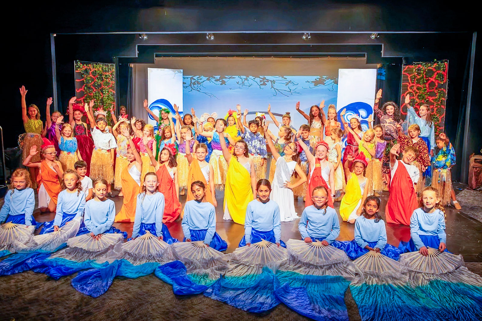 The cast of Moana JR.: The Voyagers played by American Academy – Castle Pines elementary students.