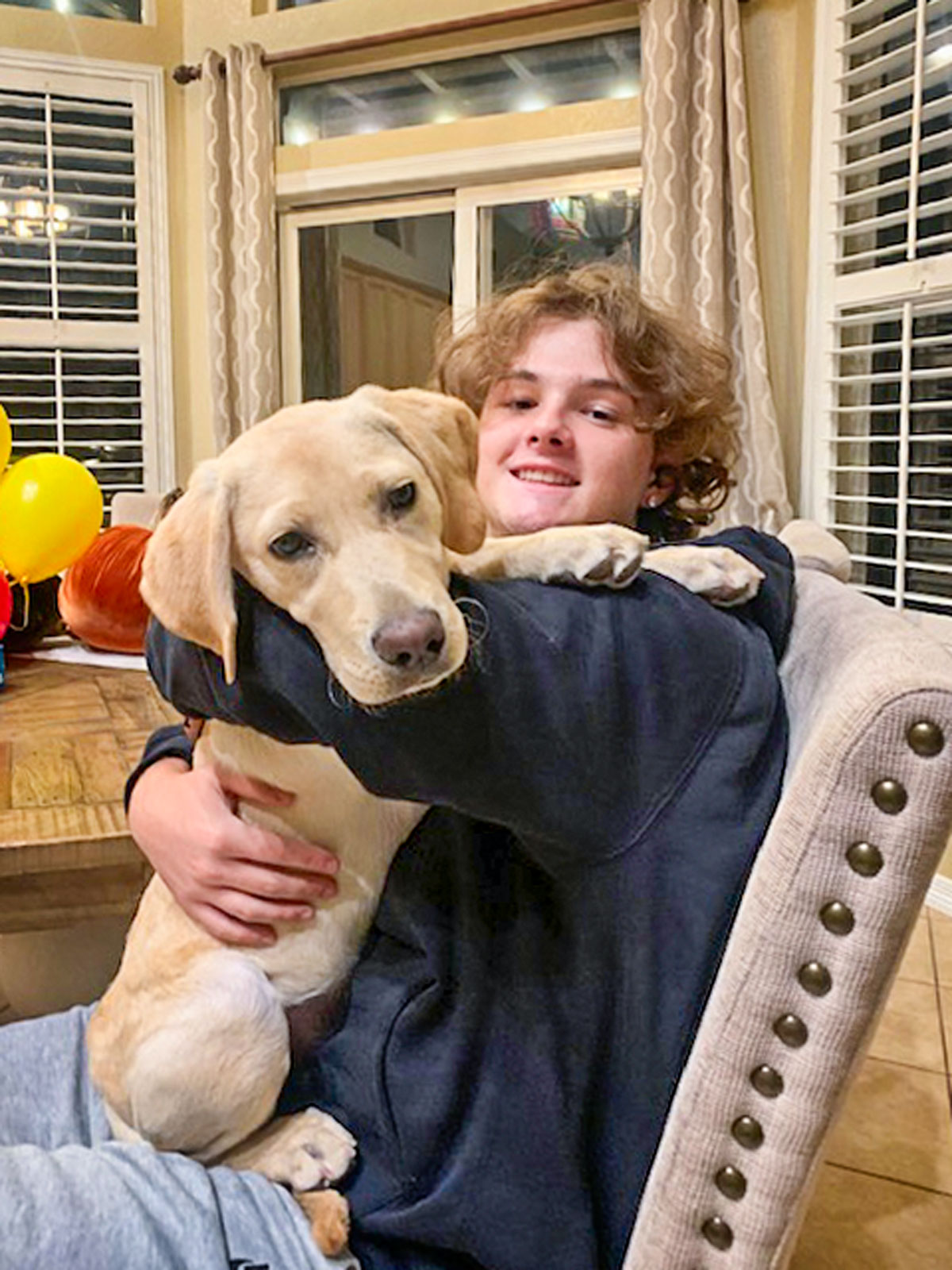 Brayden, then 17, home with the puppy he wanted Grace a yellow English Labrador