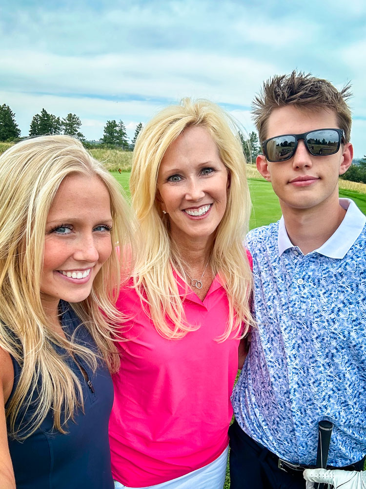 Reagan, mom Steph and Brock Topping spending time golfing.
