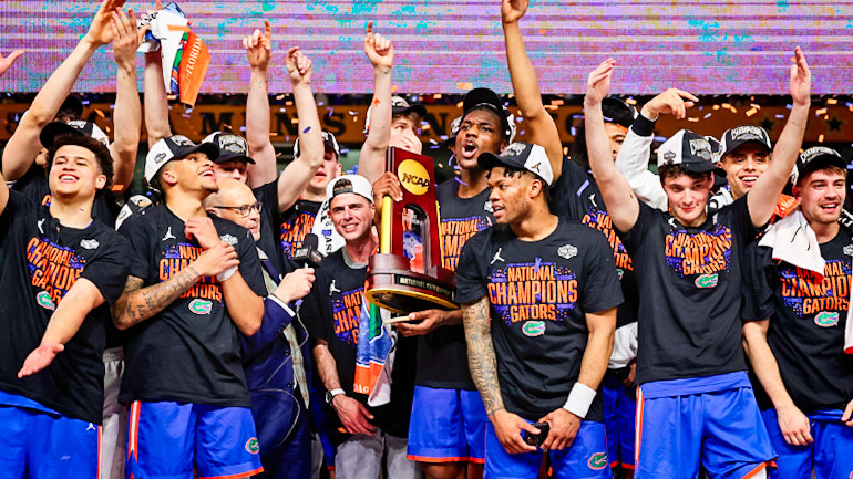 The University of Florida celebrating the national championship victory last year. This was the Gators third national title in program history.