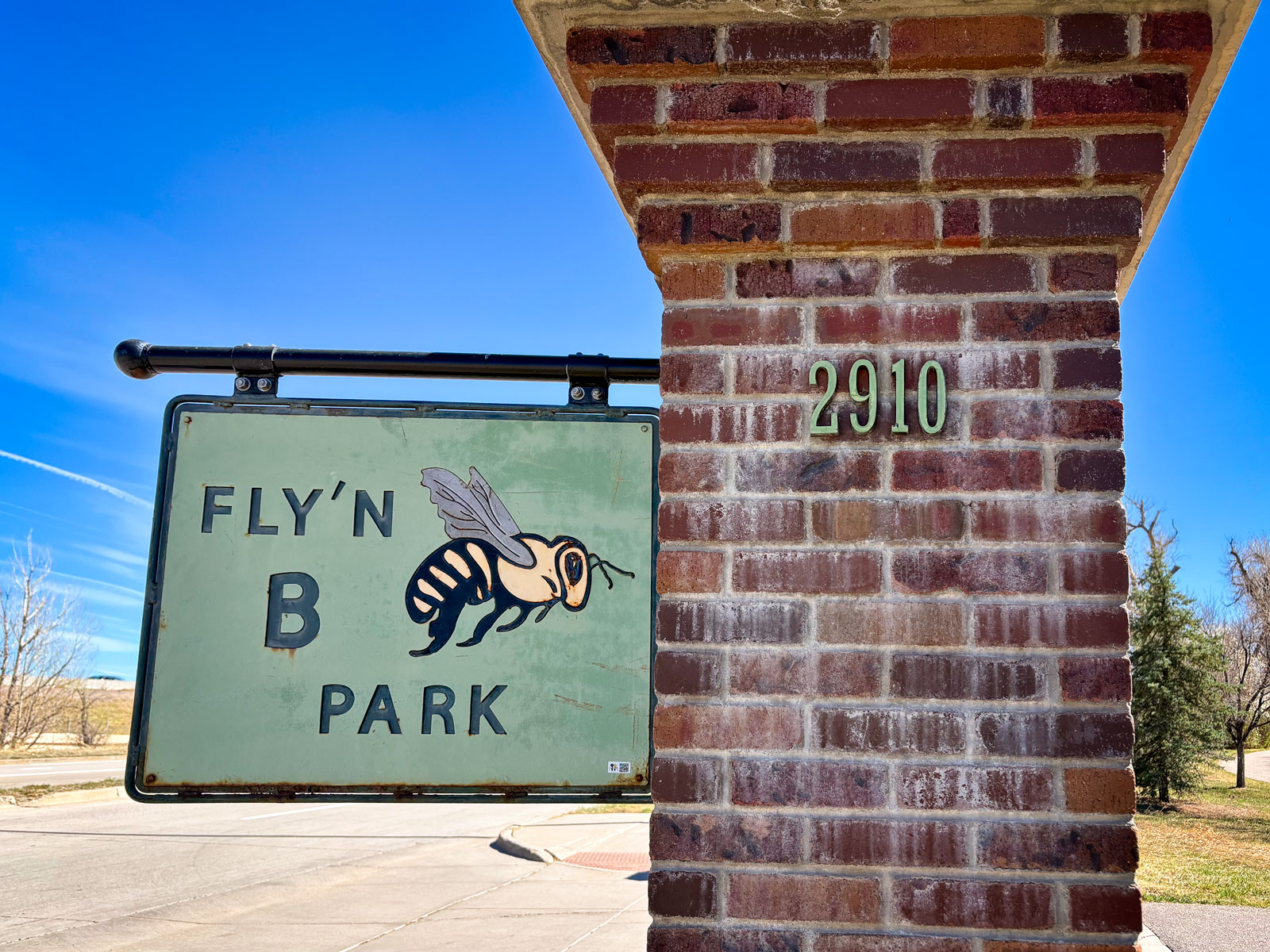 The Fly’n B Park sign is at the entrance off Plaza Drive.