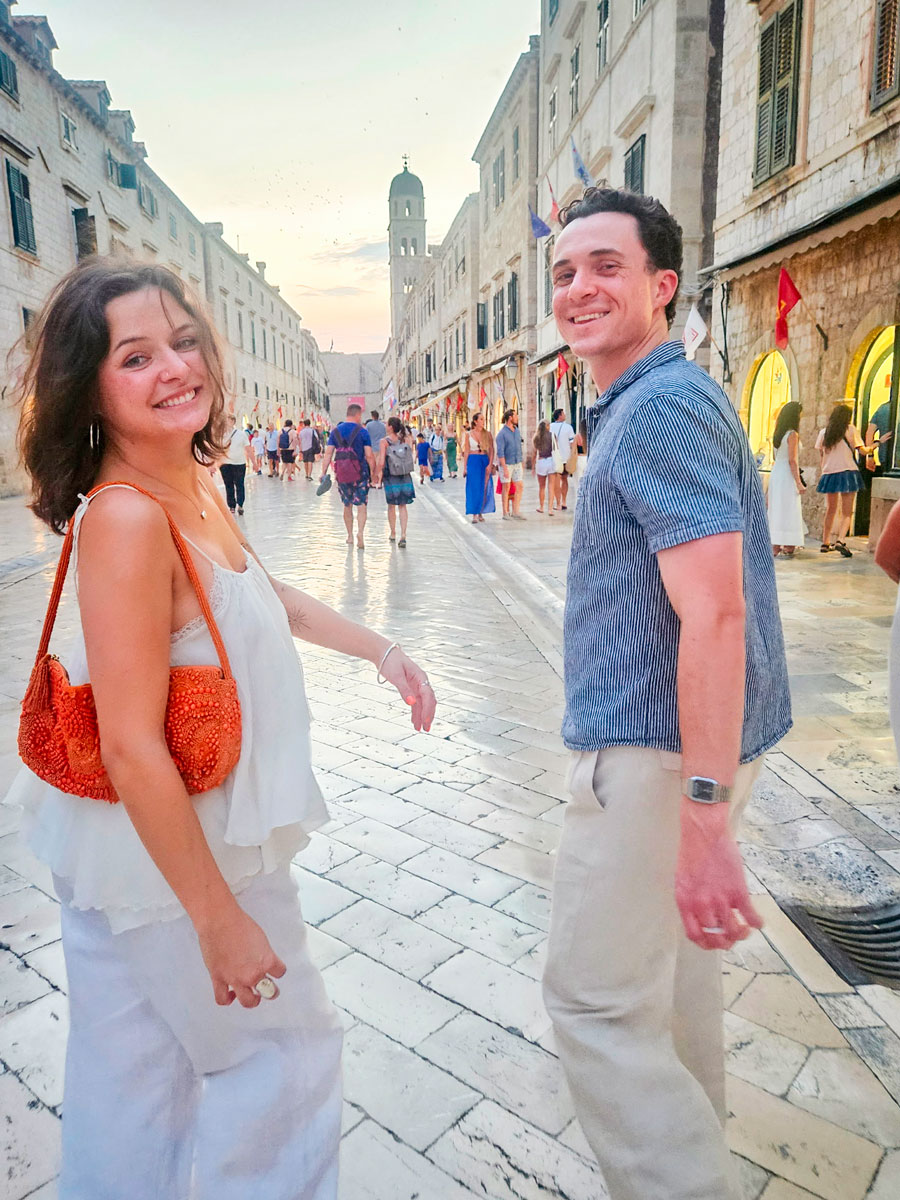 Anabel and Alex Lockett stroll through the Stradun, the main street of the Old Town in Dubrovnik, Croatia.