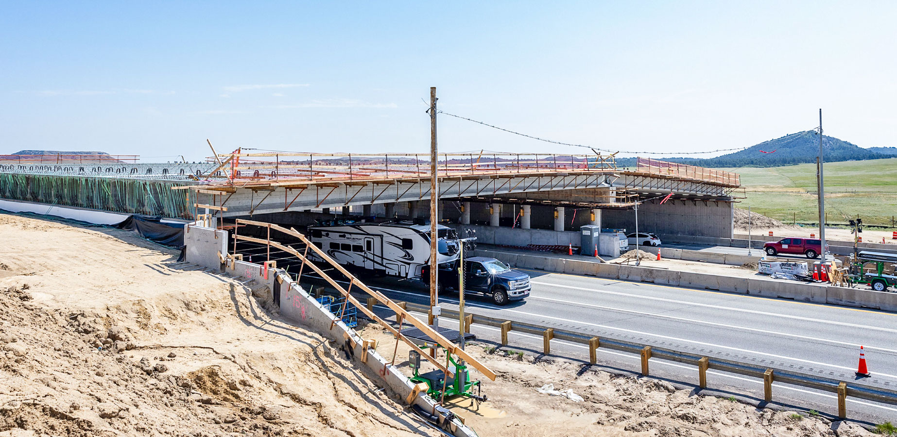 Called the Greenland Wildlife Overpass, the project reached the half-way milestone in late July and is a critical component of the overall wildlife crossing system of underpasses and fencing as a part of the I-25 South Gap project, which improved 18 miles of I-25 from Castle Pines to Monument. The completed wildlife crossing network is expected to reduce wildlife / vehicle collisions along that stretch of I-25 by 90%.