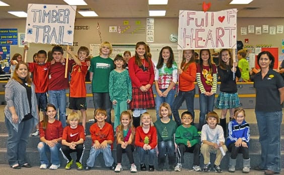 Timber Trail Elementary (TTE) students and their families donated nearly $4,500 to a holiday campaign run by student leaders to help four families in crisis this December. The 21 fourth and fifth graders who comprise the “Timber Team” (TTE’s equivalent of a student council) chose to assist four families through the Women’s Crisis and Family Outreach Center. They named the holiday drive “Gifts from the Heart.” The students were led by Lisa Towne, a Castle Pines resident and owner of Little Italy restaurant, and their faculty advisor, Kristen WardBrown.