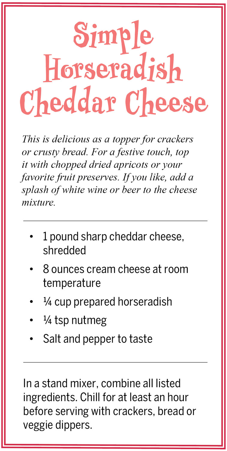 The recipe I’ve shared here is deceptively simple. Throw together a few ordinary ingredients and you’ve got a cheese spread that tastes like something special. It’s a horseradish-forward spread, so in addition to being a fun appetizer, it’s an excellent condiment if you happen to have prime rib or roast on your holiday menu. I also like to spread this on bread and put it under the broiler until it’s bubbly and pleasingly golden for fancy-pants cheese toast that makes a simple cup of soup feel like a complete and satisfying meal.